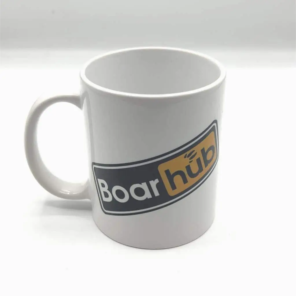 Weiße Keramiktasse mit Boarhub Aufdruck beidseitig (bedingt Spühlmaschinenfest)