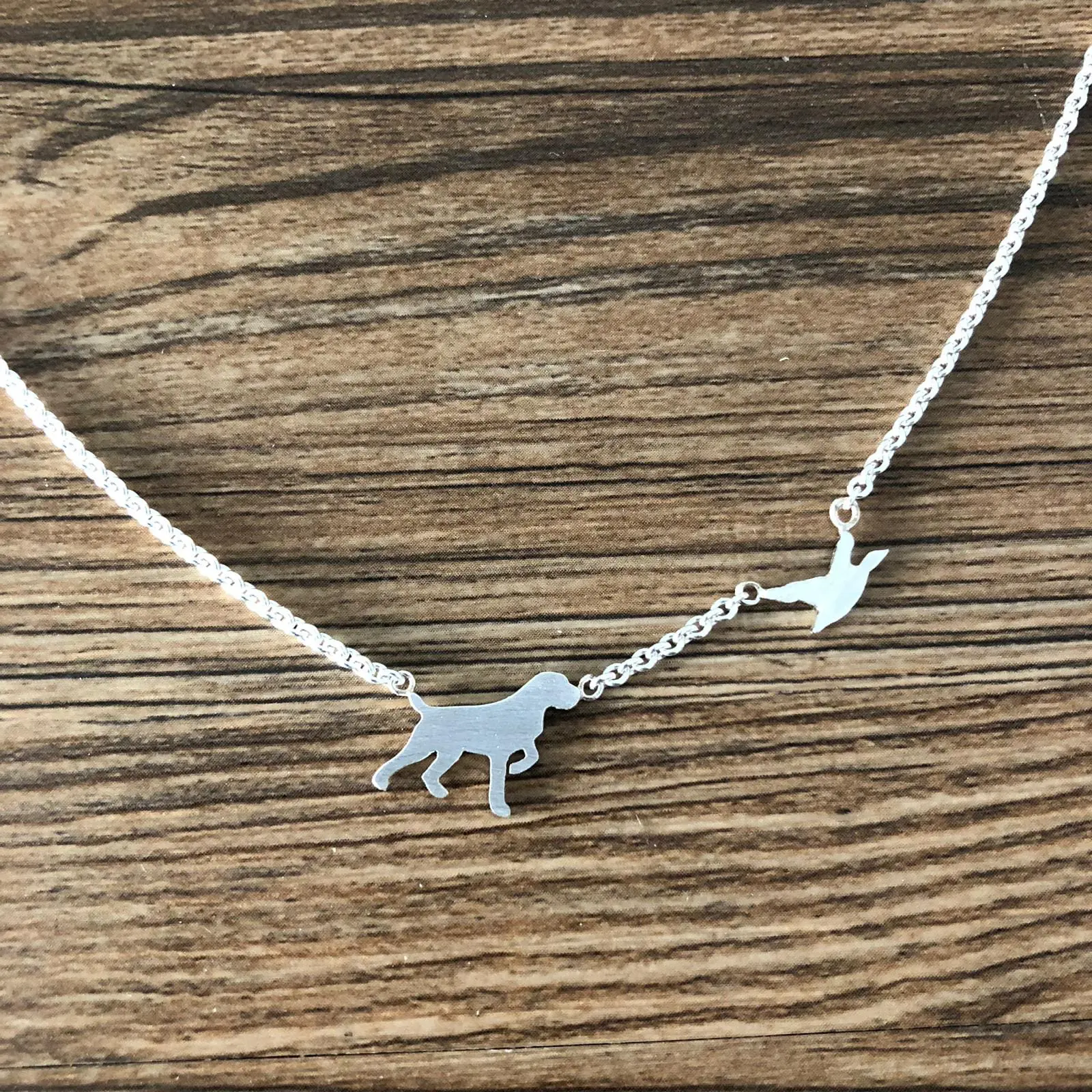 Silberkette mit .925 massivsilberner Silhouette eines Deutsch Drahthaar ca. 14 mm und einer Ente.