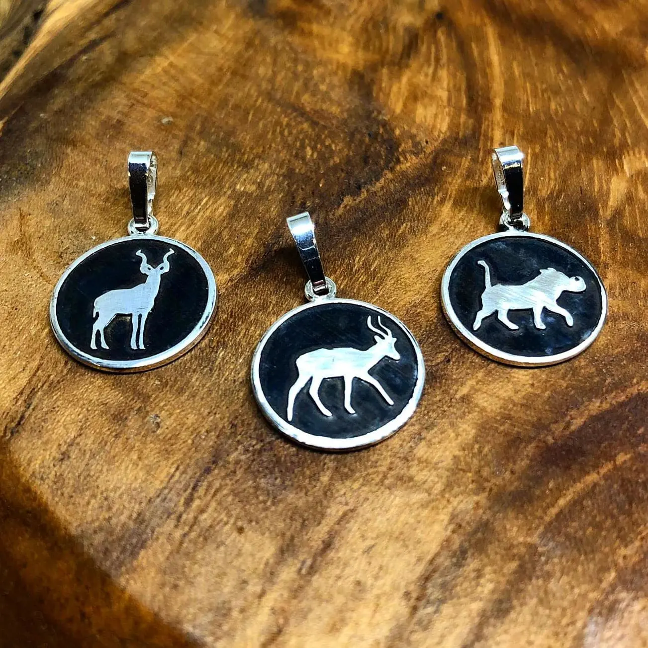 Silberkette mit .925 Sterlingsilber Kettenanhänger mit tief gravierter Wildtiersilhouette 14mm Durchmesser.